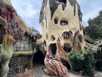 달랏에서 가장 독특한 건축물인 크레이지 하우스는 베트남 건축가 당 비엣 응아(Dang Viet Nga)가 설계한 초현실주의 스타일의 게스트하우스입니다. 나무 모양의 건물과 동굴 같은 내부, 그리고 구불구불한 계단과 다리들이 마치 동화 속 세계에 온 것 같은 느낌을 줍니다. 이 건물은 현재도 계속 확장 공사 중이며, 숙박도 가능해요.